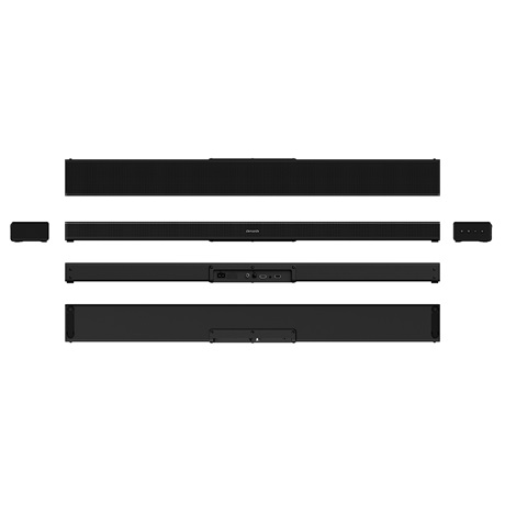 - Bemenetek: HDMI, digitális koaxiális, digitális optikai, AUX (3,5 mm jack)