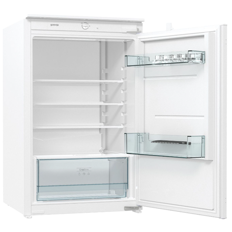Beépíthető hűtőszekrény – fagyasztó nélkül Űrtartalom: 133l, Méretek: 87,5/54/54,5 cm, F energiaosztály, mechanikus vezérlés, LED világítás, tartozékok: 4db üvegpolc, tojástartó, műanyag palacktartó az ajtóban, zöldség-gyümölcstartó fiók, zajszint: 35 db(A), fehér, Energiafogyasztás: 115 kWh