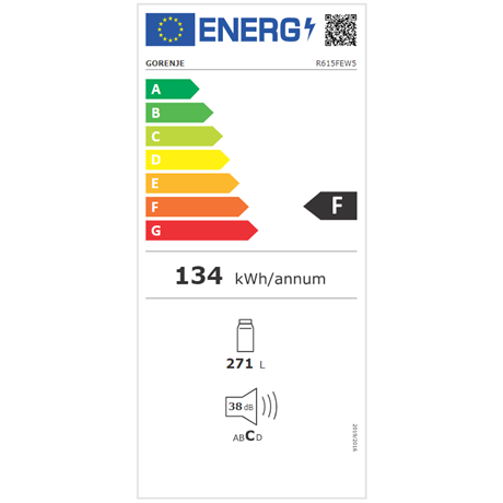 - Energiaosztály A-tól (hatékony) G-ig (kevésbé hatékony) terjedő skálán: F