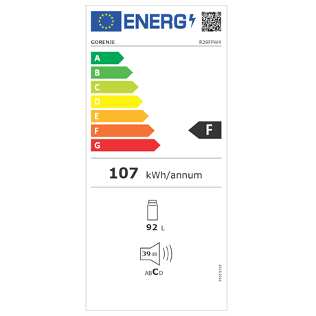 Energiaosztály A-tól (hatékony) G-ig (kevésbé hatékony) terjedő skálán: F