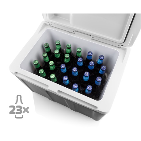 Az MC40F autós hűtőláda ideális kiegészítő utazáshoz és kempingezéshez. Nem csak kéznél lehet mindig egy hűtött ital, de az ételeket is felmelegítheti. A hűtőszekrényben lévő összetevőket és italokat 18 ° C-ig alacsonyabb hőmérsékletre lehet hűteni, mint a környezeti hőmérséklet (magas külső hőmérséklet esetén). Hevítve az ételeket fel lehet melegíteni és legfeljebb 60 ° C hőmérsékleten tartani. A hűtőszekrény 2 görgővel rendelkezik, hogy könnyen mozoghasson egyik helyről a másikra. Az oldalsó fogantyúk is biztosítják a könnyű kezelhetőséget. A 49 dB maximális zajszinttel rendelkező csendes teljesítményének köszönhetően a hűtőszekrény nem zavarja Önt a környezetében.