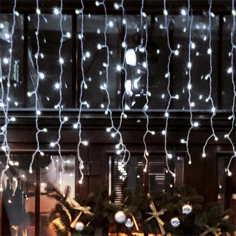 Ez a 5 méteres fényfüggöny 200 hidegfehér LED-del rendelkezik, amelyek gyönyörű, tiszta fényt biztosítanak, ezzel varázsolva egyedi hangulatot bármely környezetbe. Az állófényű LED-ek egyenletesen oszlanak el a 3/7/4/6 füzérekből álló, 10 csoportos rendszerben, amely látványos, mégis harmonikus megjelenést eredményez. A fehér vezeték kiválóan illeszkedik a különféle környezetekbe, legyen szó beltéri karácsonyi díszítésről vagy kültéri fénydekorációról.