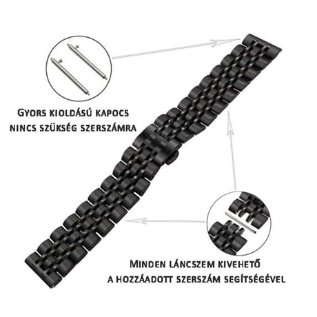 Továbbá minden olyan órához tud csatlakozni ahol a villatávolság pontosan 22mm és egyenes stift rakható be a villák közé.