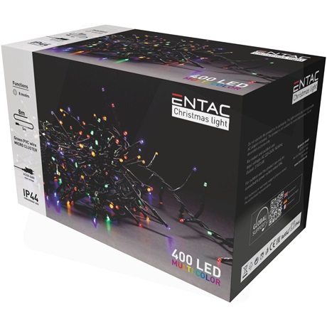 Entac Karácsonyi IP44 400 LED Fürtös Fénysor Színes 8m