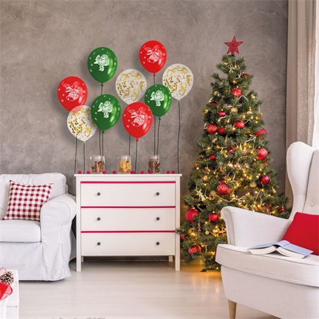 Az ünnep közeledtével lakásunkat is karácsonyi hangulatba öltöztetjük! A dekor lufi kiváló választás erre a célra, ha modern megjelenésű karácsonyi designt szeretne. A karácsonyi motívumokkal díszített gömbök igazán hangulatosak. Az arany színű lufiban lévő csillogó korongok elegáns megjelenést kölcsönöznek a helyiségnek.