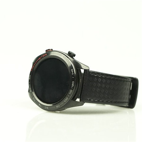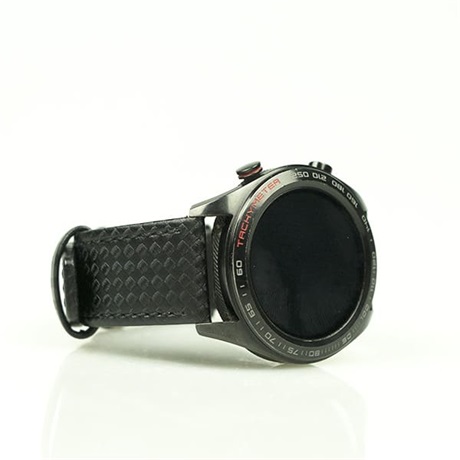 Kiváló minőségű bőrszíj karbonszálas mintával és gyönyörű, polírozott fekete csattal. Elegáns és vonzó viselet az okosórádhoz, biztosan sok elismerő pillantást fogsz kapni
