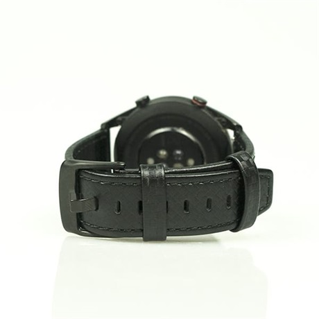 Kiváló minőségű bőrszíj karbonszálas mintával és gyönyörű, polírozott fekete csattal. Elegáns és vonzó viselet az okosórádhoz ha az alkalom úgy kívánja.