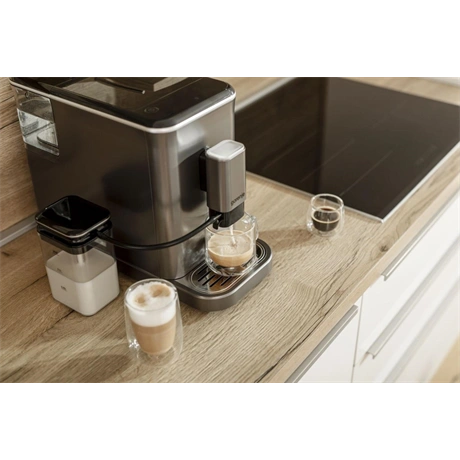 Légy a saját baristád, és készítsd el manuálisan a kívánt tejes italokat. Az állítható nagynyomású tejhabosító segít felmelegíteni a tejet, és krémes, sűrű habot készíteni. A selymesen sima, forró vagy habosított tej egyetlen mozdulattal gazdagítja a kávéélményt. Valódi előny: a levehető egységnek köszönhetően a felesleges tejet egyszerűen tárolhatod a hűtőszekrényben, vagy ha az egészet felhasználod, könnyen tisztíthatod a készüléket.