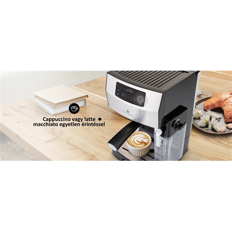 - Espresso, Lungo, Cappuccino, Latté és habosított tej egyetlen érintéssel