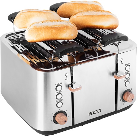 Az ECG ST 4767 Timber kenyérpirító mindig biztonságosan használható. A felesleges égési sérülések megelőzése érdekében hőszigetelt falakkal láttuk el , és az üzem közbeni stabilitás érdekében csúszásgátló lábakkal is elláttuk .