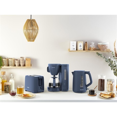 A stílusos Tefal TT2M1410 Morning Blue kenyérpirító első pillantásra lenyűgöz elegáns kialakításával, amely minden modern konyhába illik. A kenyérpirító 7 pirítási fokozattal és 2 extra széles rekesszel rendelkezik, amelyekbe a vastagabb és gyengébb pirított kenyérszeleteket is be lehet helyezni. A készülék stop funkcióval vagy kivehető morzsatálcával is el van látva a könnyű karbantartás érdekében.