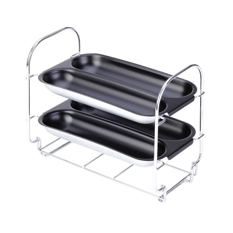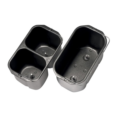 – Két (egykamrás egy nagy kenyérhez, vagy kétkamrás két kis kenyérhez), tapadásmentes bevonatú edénnyel, amelynek köszönhetően a kenyeret könnyen ki lehet venni. A kétkamrás edény lehetővé teszi 2 db együttes pékség elkészítését
