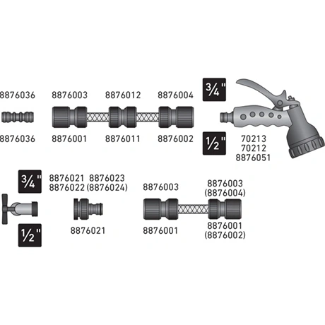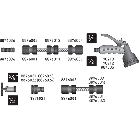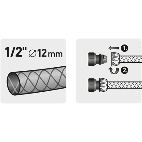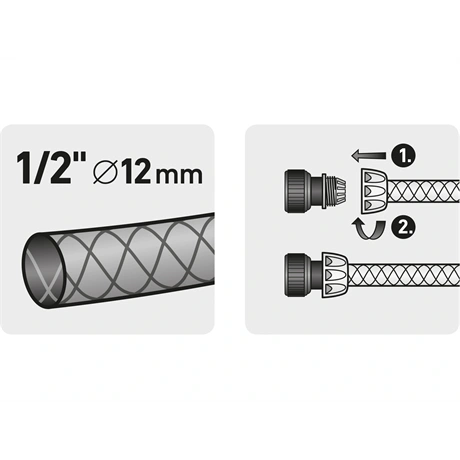 - 3/4"-os bemenet (külső menetes), 3/4" átmérőjű tömlőhöz tervezve