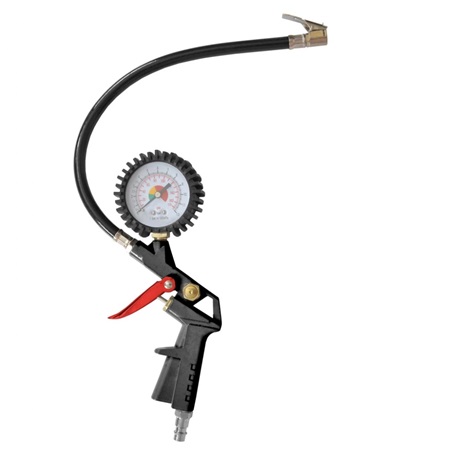 Levegőpisztoly tömlővel és manométerrel