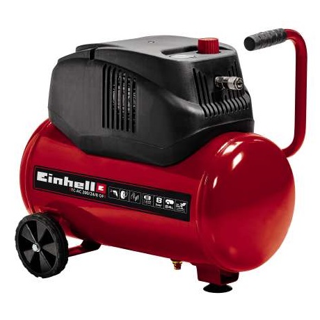 Az Einhell TC-AC 200/24/8 OF kompresszor egy olyan multifunkciós alapkészülék, amely nem hiányozhat egyetlen garázsból és műhelyből sem. A kompresszor motorja perceként 15 000 fordulatszámával 180 liter/perc szívóteljesítményt és 8 bar üzemi nyomást biztosít. A kompresszort olaj- és karbantartásmentes motorral tervezték, így minimális szervizelést igényel. A 24 liter űrtartalmú tartály elegendő levegő tartalékot biztosít. A max. 8 bar üzemi nyomást a nyomásszabályozó segítségével állíthatja be, és így számos feladatra, többek között pl. lakkok és festékek felhordására, illetve labdák és gépjárműabroncsok felfújásához is használhatja a készüléket. A szabályozott sűrített levegővel történő munkákhoz a készüléket nyomásmérővel és gyorscsatlakozó aljzattal látták el. A visszacsapó- és biztonsági szelepek biztonságos munkavégzést tesznek lehetővé, bármilyen munkához használja is a készüléket. A karbantartás kényelmesen elvégezhető a vízteleíntő csavarnak köszönhetően, hiszen a kondenzvizet így egyszerűen leengedheti. A rezgéselnyelő lábak maximális stabilitást biztosítanak, míg a nagyméretű kerekek és a praktikus nyél egyszerű szállítást tesznek lehetővé. Az Einhell elhivatottan bízik termékei minőségében, ezért a tartályra 10 év rozsdamentességi garanciát vállal.