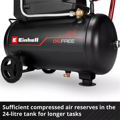 Az olajmentes szivattyúnak köszönhetően az Einhell TC-AC 190/24/8 I OF kompresszor kevés karbantartást igényel, mivel nincs szükség olajcserére. Ezenkívül a kompresszor alacsony hőmérsékleten is simán működik.