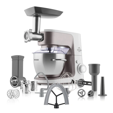 - 54 mm átmérőjű húsdaráló (3 méretű darálólap, kolbászfej, kibé fej, süteménykiszúró, tömörítő, garat)