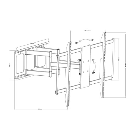 Fali tartókonzol TV-k, monitorok és egyéb VESA konzol kompatibilis eszközök rögzítéséhez. Nagy teherbírású, acélból készült, dupla karral rendelkező konzol, amely segítségével 100"-os kijelző méretig felszerelhetőek a TV-k.