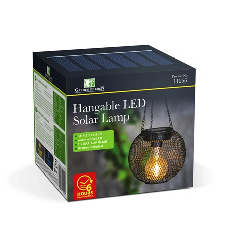 Ez a LED-es szolár lámpa ideális választás kültéri világításhoz, amely egyszerre praktikus, elegáns és energiatakarékos megoldást kínál Önnek. Kiváló minőségű napelemének köszönhetően a nap energiáját hatékonyan alakítja át villanyenergiává, így nem igényel hálózati csatlakozást. A termék rácsos fémháza tartós és időjárásálló, míg a felakasztható lánc lehetővé teszi egyszerű és változatos elhelyezését teraszán, erkélyén vagy kertjében. Egyetlen gombnyomással könnyedén be- és kikapcsolhatja a lámpát, amely praktikus, kompakt méretével bármely kültéri helyszínen jól mutat.