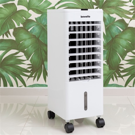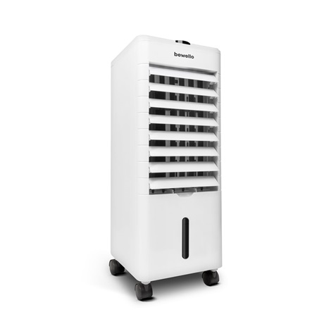 A nyár közeledtével mindent megteszünk, hogy lakásunkban kellemes, élhető hőmérséklet legyen. Ezzel a kerekeken guruló léghűtő berendezéssel könnyedén növelheti komfortérzetét. Csak töltsön a készülék tartályába hideg vizet, adagolhat hozzá jeget vagy helyezzen a tartályba jégakkut és csatlakoztassa egy fali aljzathoz, máris élvezheti a hűsítő fuvallatot. A készülék képes a légtér páratartalmának növelésére is, így megelőzhető az egészségtelen alacsony páratartalom. A készülék vezérléséhez nem szükséges felállnia a székből, a tartozék távirányítónak a segítségével könnyedén beállíthatja a kívánt funkciót.