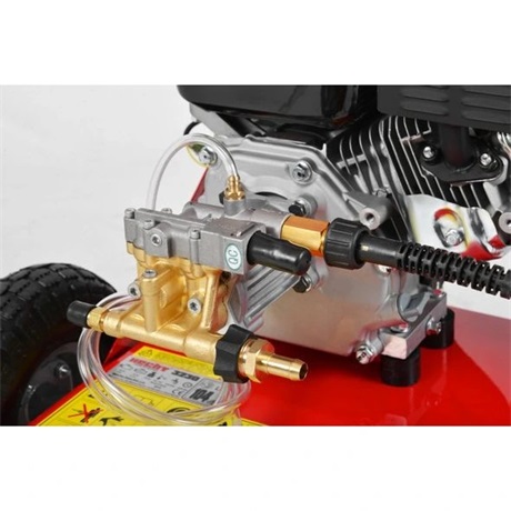Hecht 3230 magasnyomású mosó könnyed mosási lehetőséget biztosít. 193 cm3-s, 4 ütemű benzines motorral rendelkezik, ami akár 207 bar nyomásra is képes. Óránként 681 literes áramlási sebességet képes rendelkezésünkre bocsátani. Olyan helyeken is használható, ahol nincs villamos energia. 5 fúvókával- fekete hab fúvóka tisztítószerek/vegyszerek-piros: egyenes fókuszált nagy nyomóerő, sárga:15º széles sugárzás-kis területek intenzív tisztítására, zöld:25º széles sugárzás közepes méretű területek tisztítására, fehér 40º széles sugárzás nagyobb területek tisztítására.