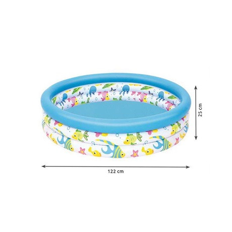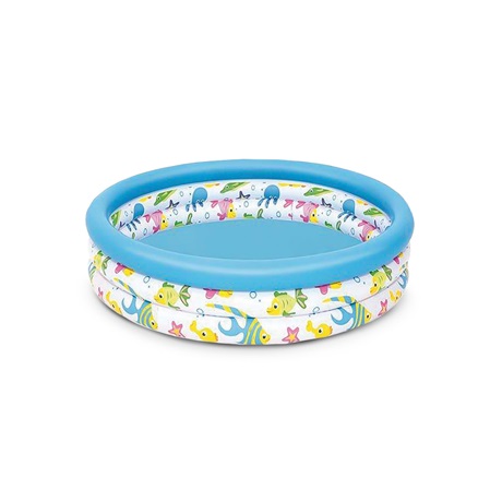 A víz örömeinek játékos felfedezéséhez készült gyermekmedence. Több gyermek számára is alkalmas, három gyűrűs, felfújható medence. A 3 egymástól független gyűrű kiváló stabilitást biztosít a talajon. További előnye, hogy nem kötelező mindhárom gyűrűt felfújni, így kisebb gyermeke könyebben tudnak ki és bejutni a medencébe.