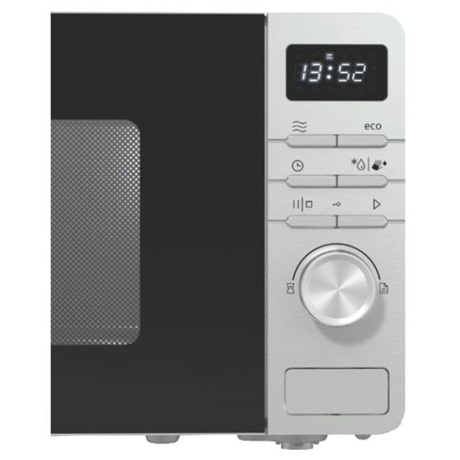 20liter, Elektronikus vezérlés – Timer, LED kijlező, üvegajtó, 5 mikro teljesítményfokozat, 800W teljesítmény, AUTO menü, forgótányér 27cm, AquaClean öntisztítás, olvasztás súly vagy idő szerint, EZÜST