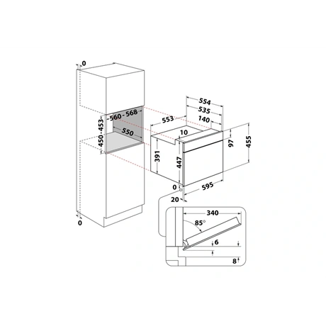 - Beépítési méret (Mag.xSzél.xMély.) (mm): 450x560x550