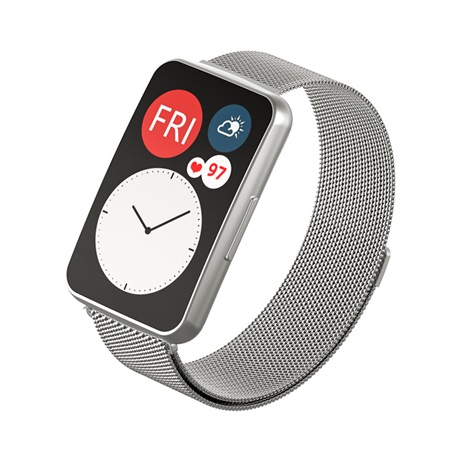 Könnyed és elegáns ezüst színű milánói fém szíj Huawei Watch Fit okoskarkötőhöz.