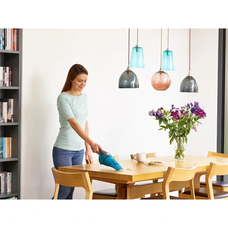 - Vezeték nélküli, 7,2V-os száraz-nedves morzsaporszívó, amely ideális mind folyadékok, mind szilárd szennyeződések gyors eltávolítására.