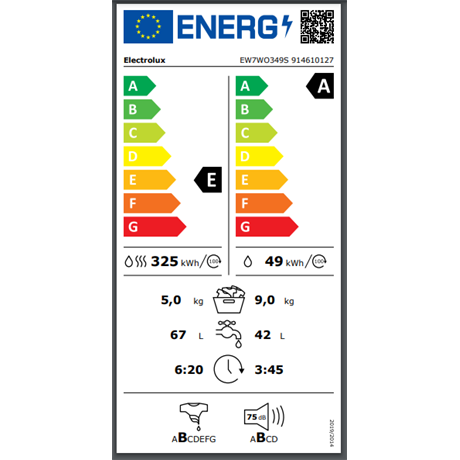 E20 Súlyozott energiafogyasztás / 100 ciklus – teljes működési ciklus (kWh): 325