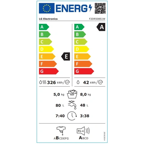 - Energiahatékonysági besorolás (mosás és szárítás): E