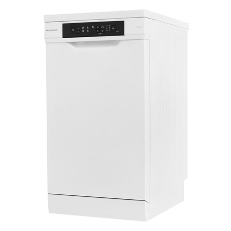 A szabadon álló Philco PD1045EA 45 cm széles mosogatógép 10 teríték egyidejű tisztítására alkalmas. Ezzel a mosogatógéppel gazdaságos működés mellett is kiváló tisztítási eredményeket érhet el. A szabványos túlfolyásvédelem és HS védelem – túlmelegedés elleni védelem mellett a mosogatógép Mini Active szárító funkcióval is fel van szerelve, amely segíti az edények aktív szárítását.