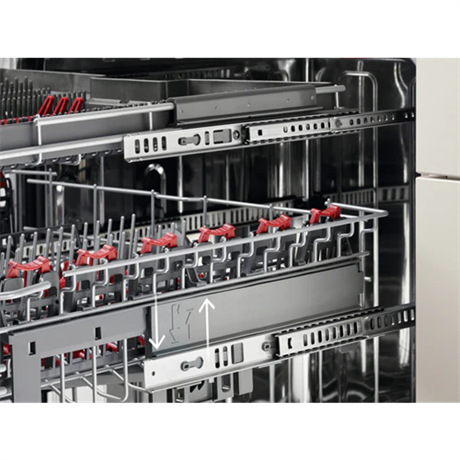Alsó kosár jellemzői: 4 lehajtható tányértartó, Műanyag fogantyú