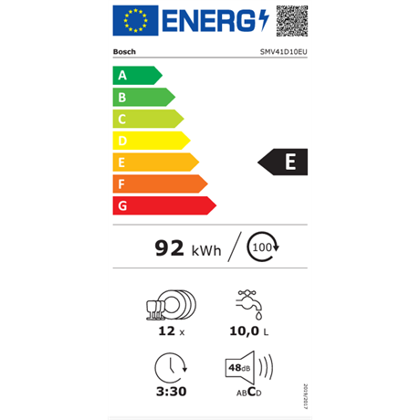 - Energiafogyasztás 100 eco program ciklus esetén: 92 kWh