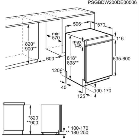 Beépítési méretek mag.(min/max)xszél.xmély.(mm): 820/880 x 600 x 550