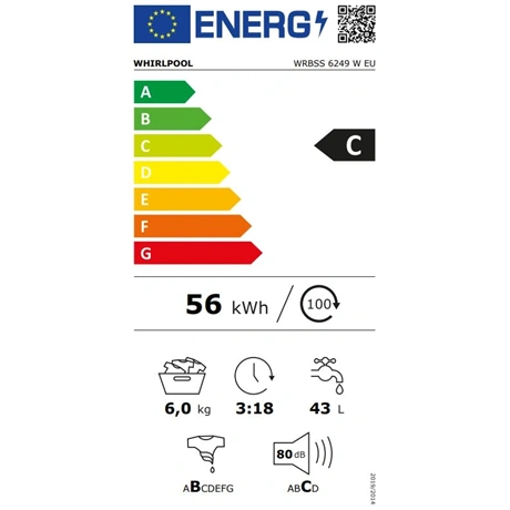- Az Eco 40-60 program súlyozott energiafogyasztása kWh-ban, 100 mosási ciklusra: 56