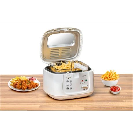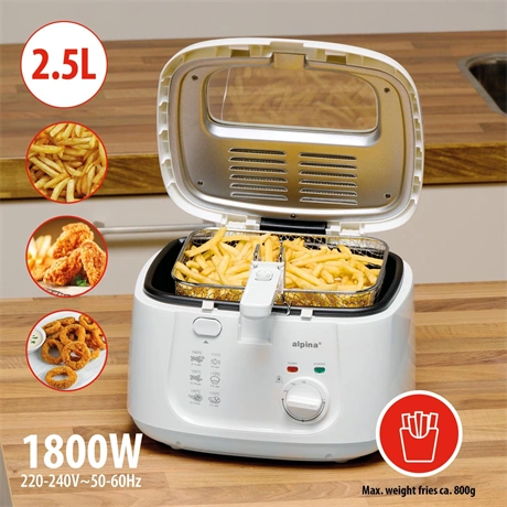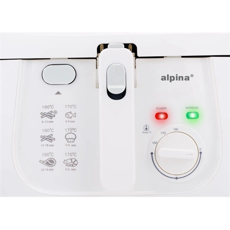 Ez a kompakt, hétköznapi használatra tervezett Alpina olajsütő, stílusos fehér kivitelben, ideális kisebb családok számára. A 2,5 literes kapacitás és a 1800 W teljesítmény gyors felmelegedést és ropogósra sütött ételeket biztosít. A beépített nézőablak és hőfokszabályzó nagyobb kontrollt ad az ételkészítés során.