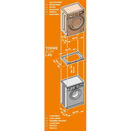 • Univerzális kialakítás, kompatibilis a legtöbb elöltöltős, helytakarékos (40-45cm) mosó- és szárítógéppel