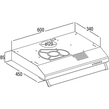 Ez a hagyományos páraelszívó önállóan falra szerelhető, vagy szekrény aljára rögzíthető, 3 sebesség fokozattal rendelkezik.
