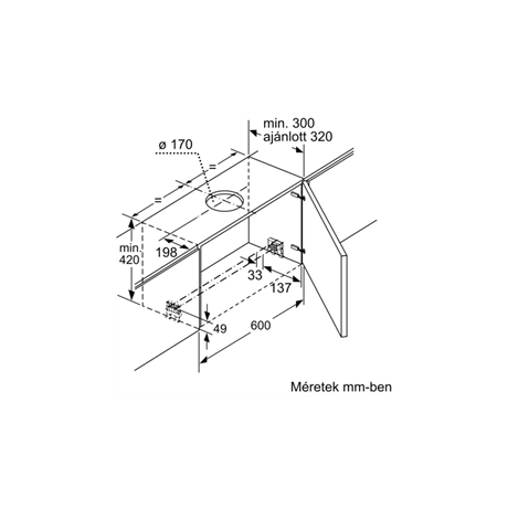 - Beépítési méretek (Magasság x Szélesség x Mélység): 385 x 524 x 290 mm