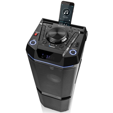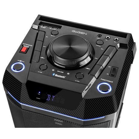 Nemcsak a megjelenése és remek zenei teljesítménye miatt fogja értékelni a GoGEN BPS 738 party hangszórót. Hallgasson filmzenéket is tisztán és teljes részletességgel. Az előre beállított hangszínszabályozóknak köszönhetően egyszerűen és gyorsan adaptálhatja kedvenc zenei műfajához. Ha hangosnak érzi, akkor értékelni fogja a basszuserősítő funkciót is. Különösen a diszkók kedvelőinek részére a hangszóró színes LED háttérvilágítással van ellátva, különféle effektusokkal. Amennyiben a karaokét részesíti előnyben, akkor mindenképpen használja a két mikrofonbemenetet (6,3 mm-es JACK). A gitárosok számára az egyik használható gitár bemenetként is. Az LCD kijelző a jobb orientációra szolgál a lejátszási adathordozókban vagy az equalizerekben. A GoGEN BPS 738 party hangszórót az elektromos hálózatról táplálják. A beépített fogantyúknak köszönhetően azonban nagyon könnyen hordozható és szinte mindenhol használható.