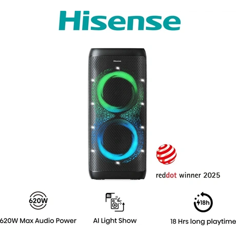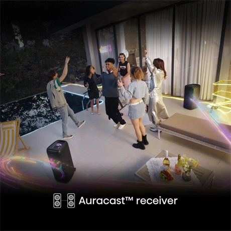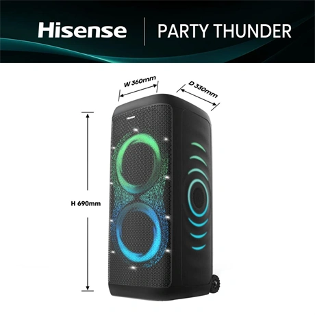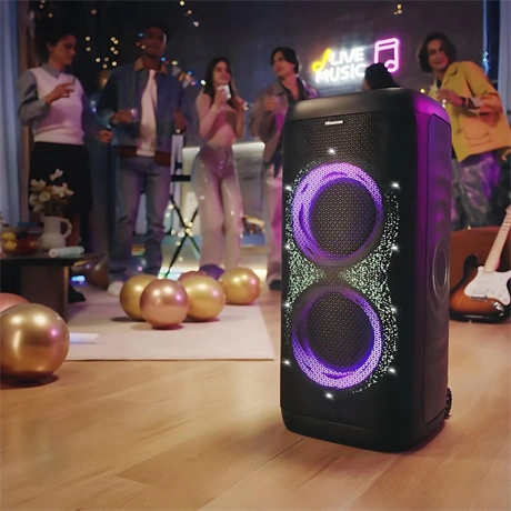 Bulizz a barátaiddal, ha két vagy több Hisense Party Thunder vezeték nélkül csatlakozik. Tökéletes bármilyen összejövetelhez, az Auracast™ sugárzott hang felpörgeti a hangulatot.