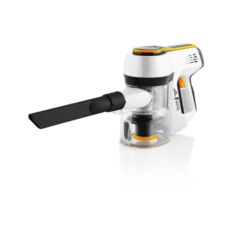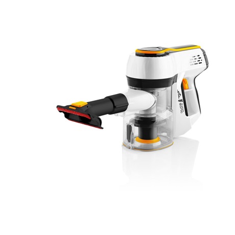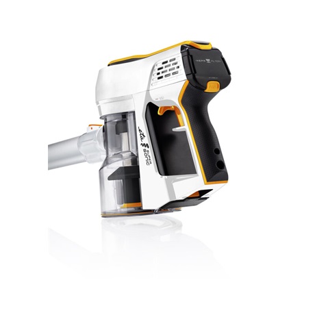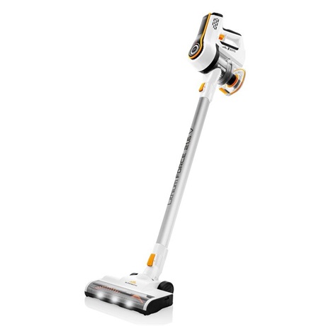 Könnyű és csendes álló porszívó forgó turbokefével és minőségi 21,6 V Li-Ion akkumulátorral és egy töltésre elegendő hosszú működési idővel (akár 40 perc).
