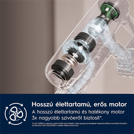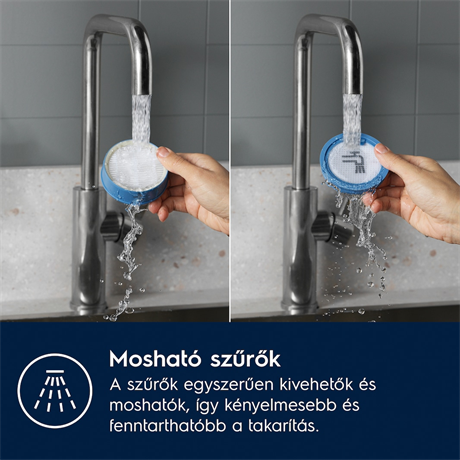 Ciklon rendszerű szűrőtechnológia : A készülék teljesítményét tovább fokozza az erőteljes motorventilátor és az 50%-kal nagyobb, kettős működésű hajtogatott szűrő.