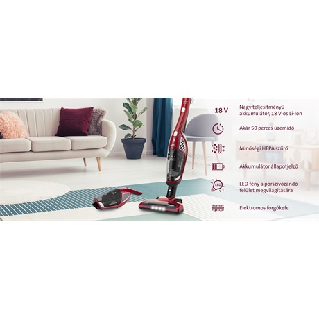 felporszívózhatja teljes otthonát. Takarítás után, a praktikus töltőállványban tárolhatja, ahol