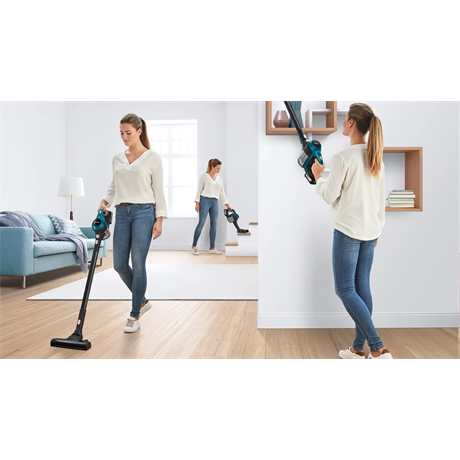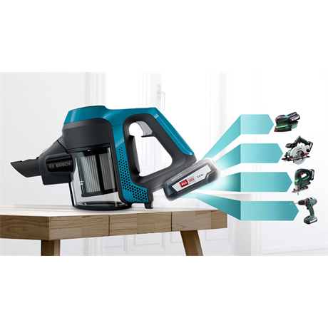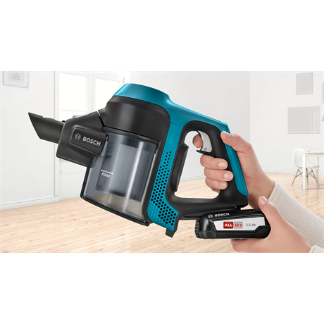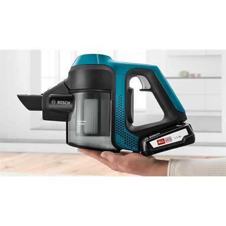 A legkompaktabb vezeték nélküli többfunkciós kézi porszívónk friss lagúnakék színben. Cserélhető akkumulátorcsomagja a Power for ALL rendszer része, következésképpen kompatibilis a Bosch zöld termékcsaládjának számos eszközével.