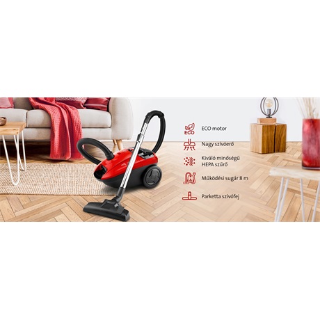 Az ETA Diego porzsákos porszívó biztosan lenyűgözi már első látásra a gyönyörű, piros