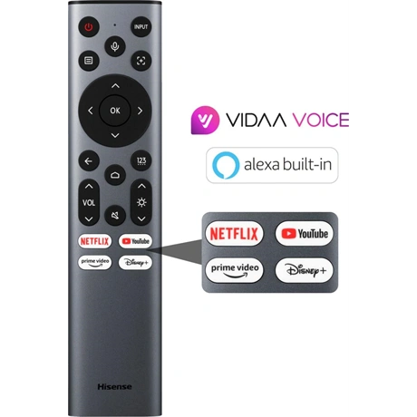 Egyszerűen használható, gyorsan reagál, rendszeresen karbantartott és frissített. A VIDAA okos operációs rendszer milliárdnyi streamelt tartalmat (Netflix, Disney+, Prime Video) és okos funkciókat kínál, így biztosan találsz magadnak valami néznivalót.