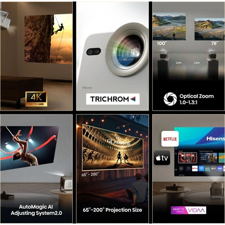 A kifinomult DLP rendszer 2,07 millió mikrotükröt vezérel, hogy akár 200 colos tűéles 4K képet biztosítson. Eközben az AI 4K tisztaság finom részletességű látványt és kristálytiszta precizitást nyújt minden egyes pixelben.